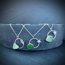 - Sea Glass Pendant Necklaces, the Seren Star has a beautiful textured Silver star off set to the Sea Glass, on a Sterling silver circle.