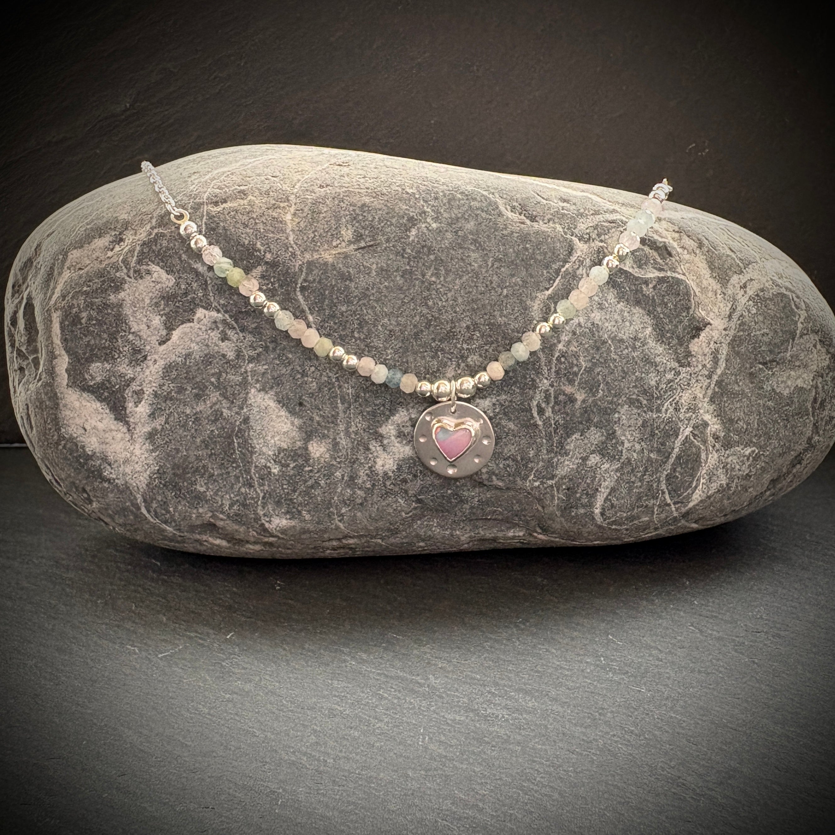 Sterling Silver Sea Pottery heart necklace Blue and White b