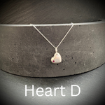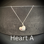 The LOVED heart, a deliciously delicate Sterling silver heart necklace, cast from a hand carved mould this heart necklace is inset with a vintage 2mm natural ruby. (purchased from a retired jeweller and his daughter helping him to sell off his gemstones that he'd acquired from years in the trade). Very much a limited edition. Choose from either a gentle frosting giving a matte finish, or a shiny polished while the imperfections from hand casting are left to be seen, as whose heart hasn't had a knock or two in love?