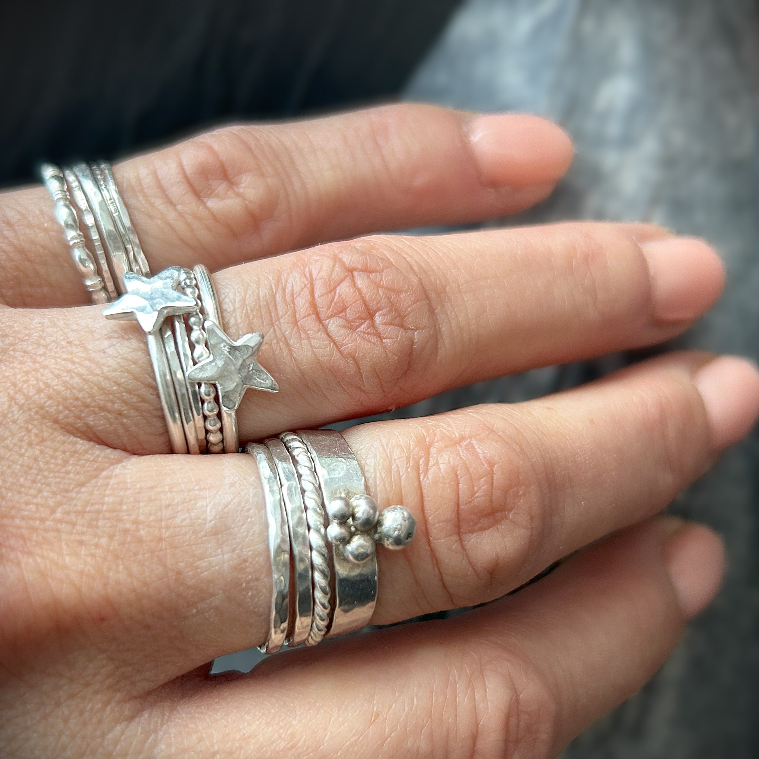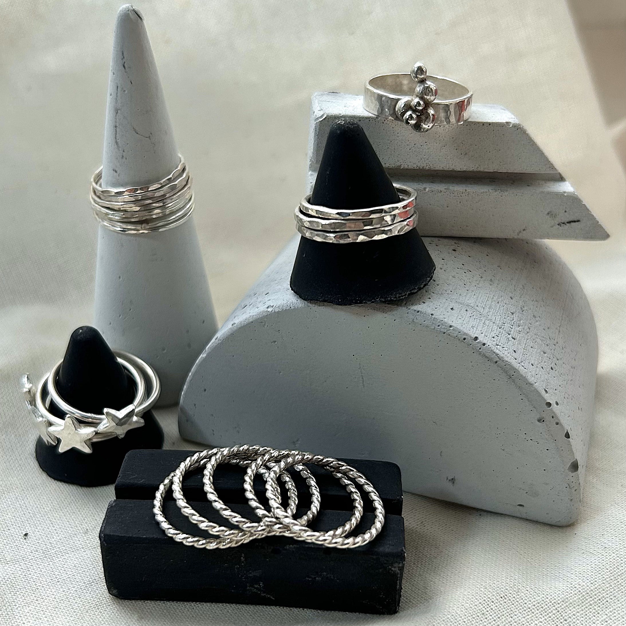Learn how to make Sterling Silver Stacking rings. In this Workshop you will make a set of Sterling silver stacking rings, in different styles. You will be shown how to texture the silver to make different designs.