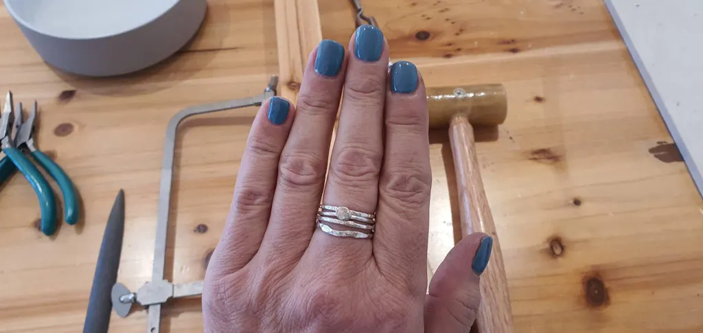 A really enjoyable and relaxing workshop with everything provided and clearly explained to enable us to create stacking rings. Thank you for a lovely morning.